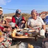 Edirne’de kuru fasulye hasadı yapan köylü kadınların, fasulyeleri tek tek ayıkladıktan sonra pişirip afiyetle hep bir arada yemesi ve bir kadının masadaki soğanı yumrukla kırması yüzlerde tebessüm oluşturdu.