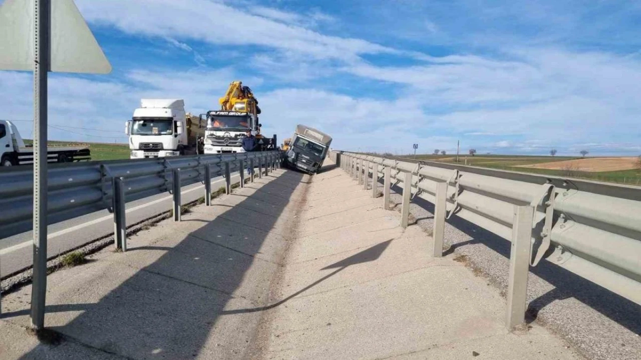 Edinilen bilgiye göre, Edirne’den İstanbul istikametinde seyir halinde olan A.S. idaresindeki 34 YB 9972 plakalı kamyonet, bölünmüş yol arasındaki bariyerlerin arasına girerek ilerlemeye devam etti.