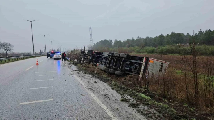 Edirne Kapıkule Sınır Kapısı yolunda porselen yüklü tır devrildi.
