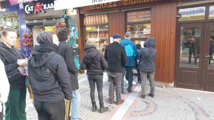 Edirne’de Ramazan ayının ilk günü sıcak pide yemek isteyen vatandaşlar, fırınların önünde uzun kuyruklar oluşturdu.