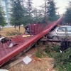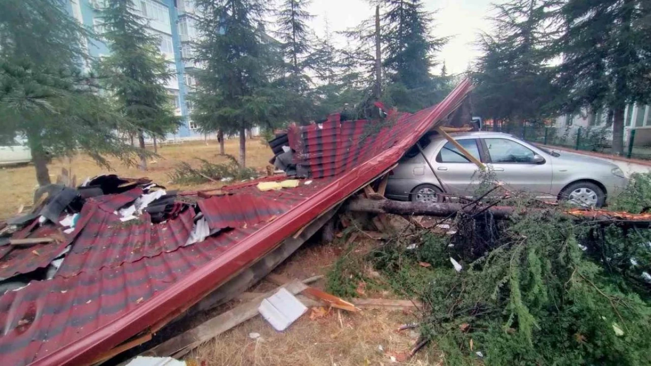 Edirne’de şiddetli fırtına nedeniyle kopan çatılar park halindeki aracın üzerine uçtu.