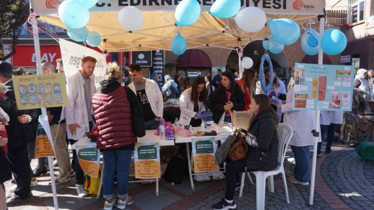 Edirne'de Trakya Üniversitesi Hemşirelik bölümü öğrencileri tarafından Saraçlar Caddesi'nde açılan stantta hem diyabetle mücadele anlatıldı, hem de ücretsiz olarak vatandaşların kan şekeri ve kitle endeksi ölçümleri yapıldı.