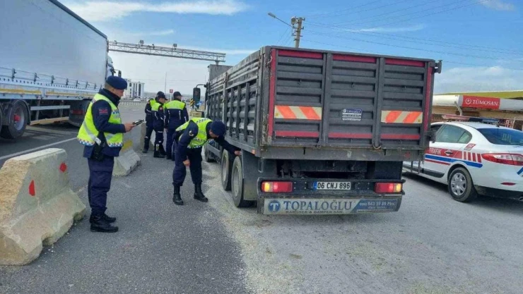 Yapılan denetimde araçlarında kış lastiği bulunmayan sürücülere gerekli cezai işlem uygulandı.