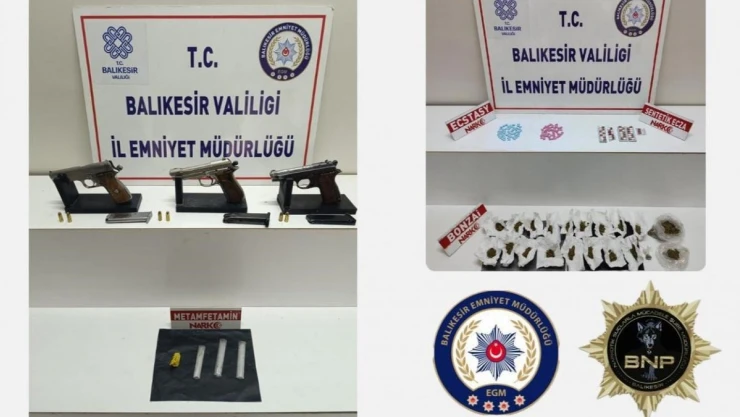 Edinilen bilgiye göre, Balıkesir İl Emniyet Müdürlüğü, Edremit Narkotik Suçlarla Mücadele ekipleri Edremit ilçesinde yapılan 2 ayrı çalışmada; 20 parça halinde 58 gram sentetik kannabinoid (bonzai) maddesi, 4 parça halinde 13 gram metamfetamin maddesi, 102 adet ecstasy maddesi, 29 adet sentetik ecza hap, 3 adet ruhsatsız tabanca, ele geçirdi. Yapılan çalışmada 6 şüpheli hakkında adli tahkikat başladı.