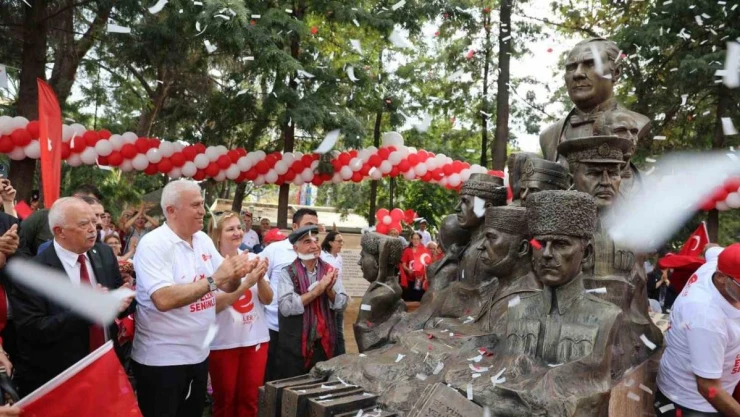 Efeler Belediye Başkanı Mehmet Fatih Atay’ın konuşmasının ardından 100. Yıl Anıt Heykeli’nin açılışı gerçekleştirildi. Milletvekilleri, meclis üyeleri, muhtarlar, siyasi partilerin ve sivil toplum kuruluşu temsilcilerinin yanı sıra Efeler halkıyla beraber kurdeleyi kesen Başkan Atay, anıtın üzerindeki örtüyü indirerek vatandaşların beğenisine sundu. Vatandaşların yükselen alkışları ve marşlarla tören sona erdi.