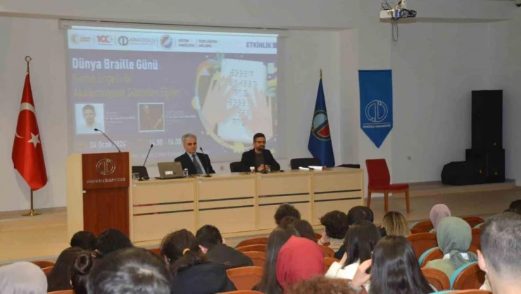 Dünya Braille Günü’ne özel olarak düzenlenen etkinlikte konuşmacı olarak Anadolu Üniversitesi Eğitim Fakültesi Dr. Öğr. Üyesi Mustafa Doğuş ve İnönü Üniversitesi Güzel Sanatlar ve Tasarım Fakültesi Dr. Öğr. Üyesi Yusuf Dumlupınar yer aldı.
