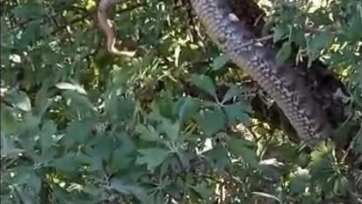 Elazığ'ın Alacakaya ilçesinde bir ağacın üzerindeki yaklaşık 4 metrelik yılan görenler neye uğradıklarını şaşırdı.