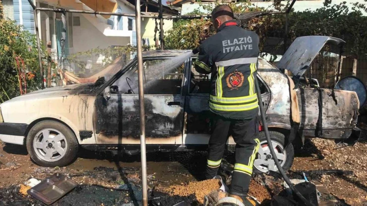 Elazığ’da çıkan yağında, bir depoyla birlikte otomobil de küle döndü.
