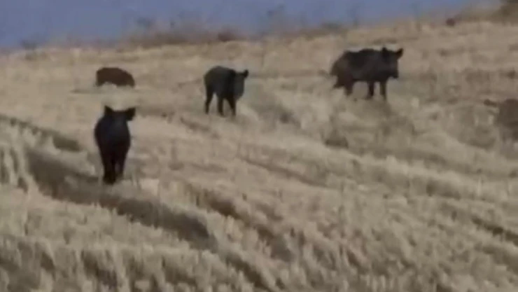 Edinilen bilgiye göre, Yurtbaşı Beldesi’nde bir çiftçi tarlada yaban domuzlarına rastladı. Domuzlar çiftçiye aldırış etmeden tarlada gezdi. O anlar cep telefonu kamerası ile görüntülenirken, domuzlar bir süre sonra uzaklaşarak gözden kayboldu.