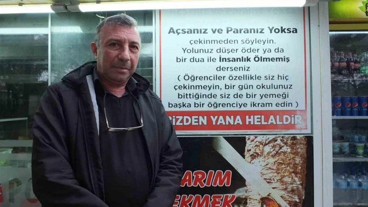 Balıkesir'in Burhaniye ilçesi Ören sahilindeki işletmesinde 6 yıldır öğrenciler başta olmak üzere parası olmayanlara ücretsiz yemek veren Adem Teslim, kışın da açtığı mekanında öğrencilere destek olmak için fiyatlarını artırmadı. İşletmenin camına, 'Açsanız paranız yoksa çekinmeden söyleyin. Yolunuz düşer öder ya da bir dua ile insanlık ölmemiş dersiniz. Öğrenciler, özellikle siz hiç çekinmeyin. Bir gün okulunuz bittiğinde sizde bir yemeği başka bir öğrenciye ikram edersiniz. Bizden yana helaldir' yazan işletmeci takdir topladı.