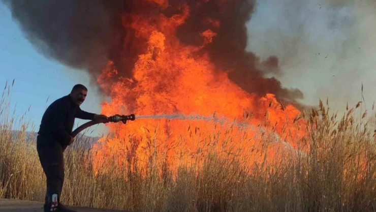 Erçek sazlığı 3 saatlik çalışma sonrası söndürüldü