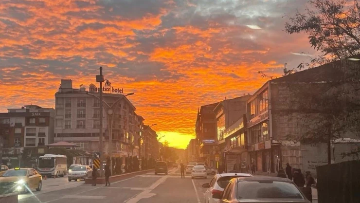 Turuncu, sarı ve kırmızının uyumu ile oluşan kartpostallık gün doğumu görüntüsü vatandaşları büyüledi. Ortaya çıkan manzara apartmanların arasından cep telefonu kamerası ile kayıt altına alınırken, bulutları kızıla boyayan güneş ışıklarının manzarası ise kendine hayran bıraktı.