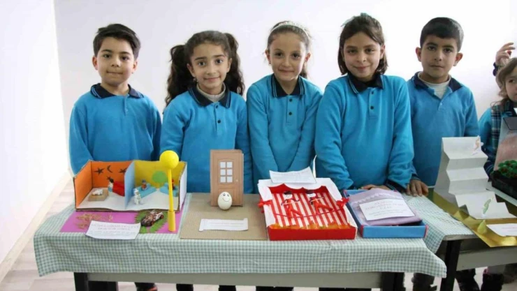 Van'ın Erciş ilçesindeki Reşit Çelik İlkokulu öğrencileri deyimleri ve atasözlerini somutlaştırarak sergiye dönüştürdü.