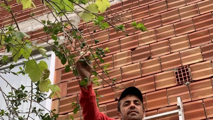 Ordu'nun Ünye ilçesinde bir erik ağacı 'yalancı bahara' aldanıp çiçek açarak meyve verdi.