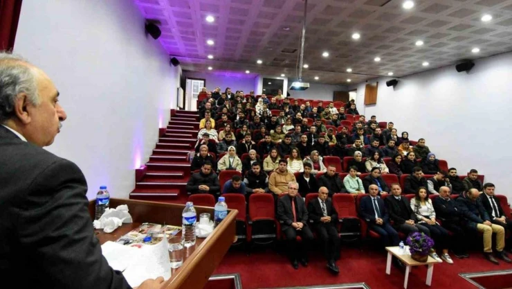 Erzurum Kalkınma Vakfı (ERVAK) Başkanı Eczacı Erdal Güzel, Milli Mücadele'nin manevi lideri İstiklal Marşı yazarı, İstiklal Şairi Mehmet Akif Ersoy'un ölümünün 87nci yıl dönümü münasebetiyle Adalet Bakanlığı Hüseyin Turgut Eğitim Merkezi Konferans Salonu'nda Mehmet Akif Ersoy'un hayatını anlattı.