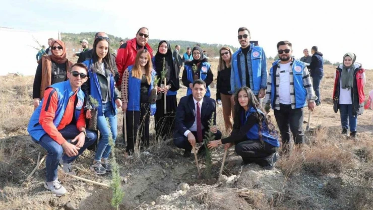 Erzincan'da 100. Yıl Cumhuriyet Ormanı'nda fidan dikim etkinliğinde binlerce fidan toprakla buluştu.