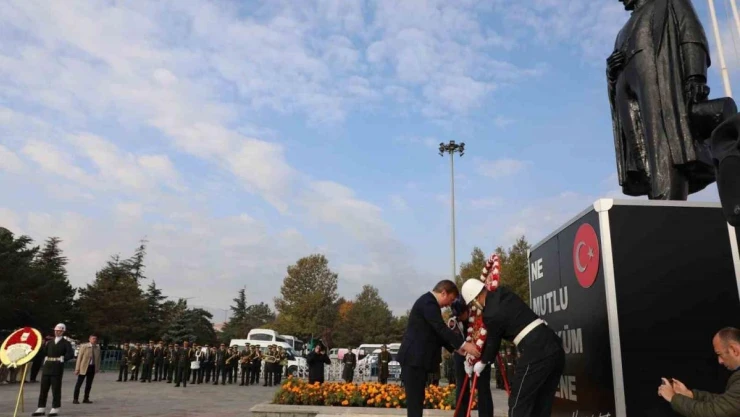 Programda ilk olarak konuşma yapan İl Milli Eğitim Müdürü Hacı Ömer Kartal, “Tüm dünyanın, hatta hayatı boyunca mücadele ettiği düşmanların bile kabul ettiği Gazi Mustafa Kemal Atatürk’ün bugün aramızdan ayrılışının 85. yılı. O, kısacık hayatında dünya tarihinde benzeri görülmemiş izler bıraktı. Atatürk ileriyi gören bir liderdi. Bize düşen onun fikirlerine kulak vermek, anlamaya çalışmak ortak değerimizi gençliğe iyi tanıtmaktır. Atatürk idealist bir liderdi. Hür ve bağımsız bir ülke idealini gerçekleştirdikten sonra Türkiye Cumhuriyeti’ni ileri müreffeh ülkeler idealine yükseltmiştir. Ve hayatı boyunca bunun için mücadele vermiştir. Atatürk, toplumun her kesmini kucaklayan bir halk adamıydı. Onun, “Benim için en büyük makam ve ödül, Türk milletinin bir ferdi olarak yaşamaktır” sözüde de bunu kanıtlar. O, eğitim bilim, fen, sanat, spor ve kültüre çok önem vermiştir. “En büyük emelim, milli irfanı yükseltmektir” sözünü söyleyen Atatürk, milli eğitim hedefleriyle yetiştirilecek gençliğin önemini vurgulamıştır. O, hep milletine güvendi, inandı ve onlarla gurur duydu. Kurtuluş savaşı’nın ardından söylediği “En büyük davamız en medeni ve müreffeh bir millet olarak varlığımızı yükseltmektir” sözü bunu ispatlamaktadır. Ömrünü Türk milletine adayan büyük kahramanın çabasına mukabil, bizlere düşen görev, yüzümüzü geleceğe dönmek, ufkumuzu geniş, hedeflerimizi büyük tutmaktır.