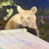Erzincan'ın Refahiye ilçesinde, bir bozayı çöp konteynerlerinde yiyecek ararken görüntülendi.