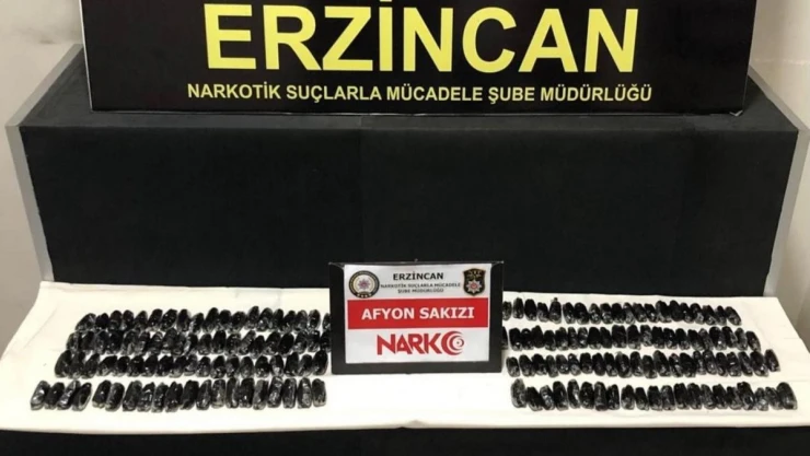 Erzincan İl Emniyet Müdürlüğü Narkotik Suçlarla Mücadele Şube Müdürlüğü ekiplerince uyuşturucu madde kullanımının ve ticaretinin engellenmesine yönelik yapılan çalışmalarda; Akyazı Polis Uygulama Noktasında durdurulan otobüste arama yapıldı. Otobüs yolcularından M.A., M.K. ve M.S.M. isimli İran uyruklu 3 şüphelinin yutma yöntemi kullanarak uluslararası uyuşturucu madde ticareti yaptıkları belirlenerek hastanede yapılan röntgen çekimlerinde vücutlarından 2 kilo 249 gram Afyon sakızı ele geçirildi.