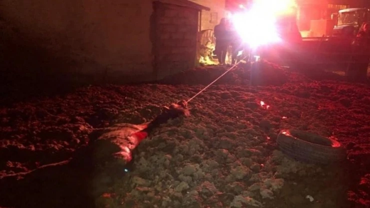 Erzincan'da hayvan gübresine batarak mahsur kalan atı itfaiye ekipleri bulunduğu yerden çıkardı.
