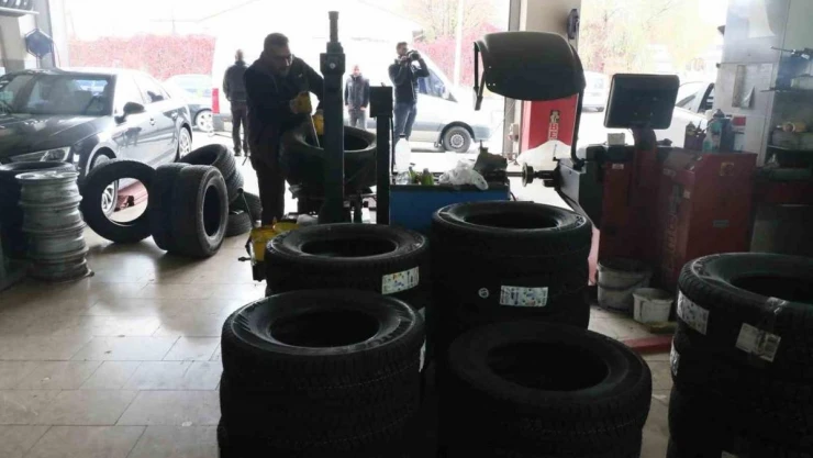 Erzincan'da oto lastikçilerde kış lastiği değişim yoğunluğu yaşanıyor