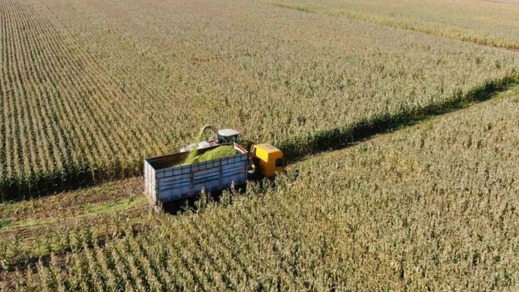 Yaz boyunca yetiştirilen mısırın hasadı biçerdöver ve traktörlerle yapılıyor. Yapılan hasat sonrası silajları stoklayan çiftçiler, hayvanlarının kışlık yem ihtiyacını karşılamış olacak.