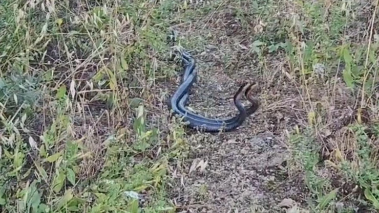 Erzincan'ın Kemaliye ilçesinde yaklaşık iki metre uzunluğundaki iki yılanın çiftleşme dansı kaydedildi.