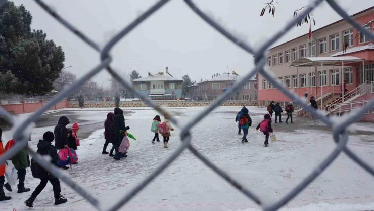 Erzincan'ın güne kar yağışıyla uyanmasıyla şehirde soğuk hava etkisini azaltırken yarıyıl tatilinin sona ermesiyle okulun yolunu tutan çocuklar kar sevinci yaşadı.