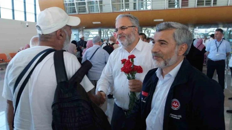 Havalimanının dış hatlar geliş terminalinden giren hacılar, Diyanet İşleri Başkan Yardımcısı Doç. Dr. Burhan İşliyen ve İl Müftüsü Muharrem Gül tarafından güllerle karşılandı. Yakınları tarafından da sevinçle karşılanan hacılar, aileleriyle kucaklaştı. Duygusal anların yaşandığı buluşmada bazı hacıların sevinç gözyaşı döktüğü görüldü.
