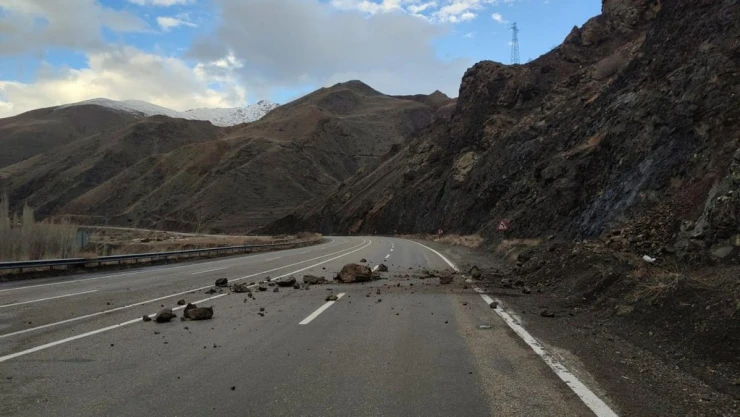 Erzurum-Artvin karayolunda yaşanan heyelan, sürücüler için tehlike oluşturdu.