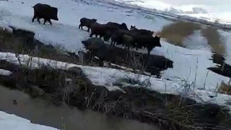 Erzurum'da aç kalan domuz sürüsü köye indi