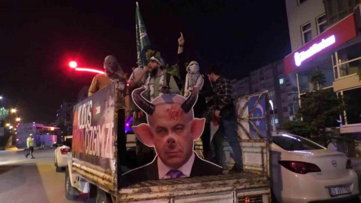 Erzurum’da gece yarısı düzenlenen "Filistin için özgürlük" konvoyuna Filistin ve Türk bayrakları ile katılan yüzlerce Erzurumlu, İsrail saldırılarını protesto etti.