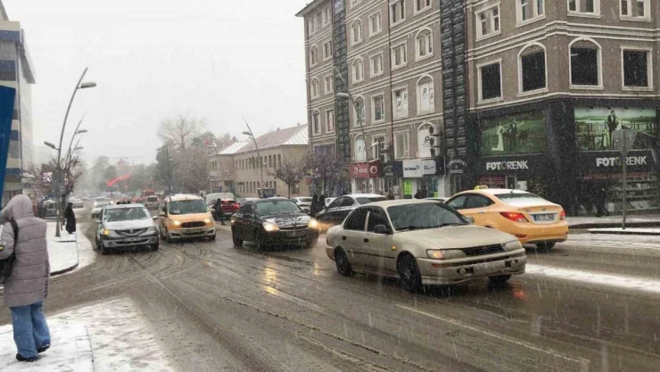 Erzurum’da öğle saatlerinde başlayan kar yağışı etkili tipi şeklinde oluyor.