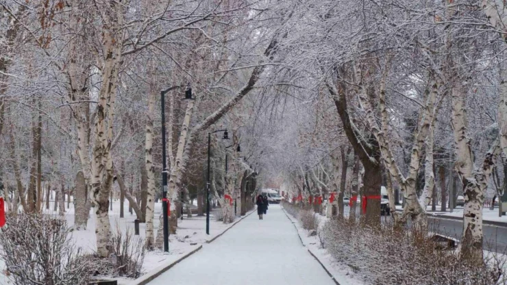 Erzurum’da gece etkili olan kar yağışı şehri beyaz bürüdü.