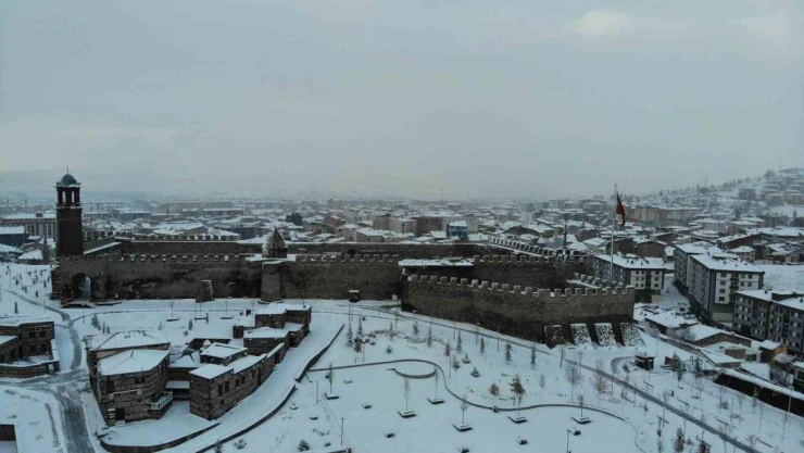 Karı ve soğuğu ile meşhur olan Erzurum’da bir yanda kışın çetin şartları yüzünü göstermeye başlarken, bir yandan da görsel anlamda güzellikler yaşanıyor. Yaklaşık altı ayı kış şartları altında geçen Erzurum’da her kar yağışı sonrası ortaya çıkan karlı manzaralar ise seyir keyfi veriyor. Başta Çifte Minareli Medrese, Erzurum Kalesi, Üç Kümbetler, Lala Mustafa Paşa Cami ve Yakutiye Medresesi olmak üzere onlarca tarihi eseri içinde barındıran Erzurum’da havadan çekilen görüntüler adeta mest etti. Vatandaşlar da bir yandan kışın zorlukları ve soğuğu ile baş etmeye çalışırken, bir yandan da karla gelen beyaz güzellikleri yaşıyor.