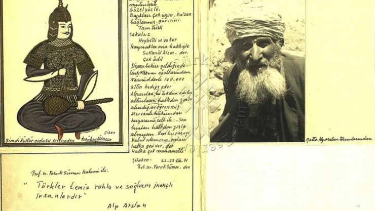 Prof. Dr. Selami Şimşek, Süleymaniye Kütüphanesi’nde bulunan bir kaynağı incelediğini dile getirerek, “Ünver’in İstanbul Süleymaniye Kütüphanesi’nde 00202 numarada kayıtlı “Erzurum Defteri’nde" 21-25 Ağustos 1971 tarihleri arasında Atatürk Üniversitesi’nin tertip ettiği “Selçuklu Tarihi ve Medeniyeti Sempozyumu’na -bildirilerin çoğu Malazgirt zaferiyle ilgilidir- davetli olarak katıldığını gösteren resmi evrak ve fotoğraflar arasında gezi dolayısıyla gittiğini tahmin ettiğimiz Çat ilçesinden bir fotoğraf paylaşmış ve altına “Çatta Alparslan’ın torunlarından” diye bir not düşmüştür. Ünver, her ne kadar bu şahsın ismini yazmamışsa da fotoğrafını paylaşmış olması önemli bir tarihi bilgi ve vesikadır. Dolayısıyla şehrimizin bir ilçesinde Sultan’ın torunu/torunları vardır.” diye konuştu.