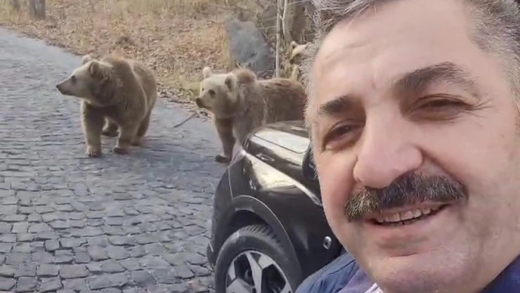 Ailesiyle birlikte Erzurum'dan Nemrut Krater Gölü'nü ziyarete giden Numan Torun'un yol kenarında karşılaştığı ayılara verdiği tepki ve sarf ettiği sözler gülümsemelere sebep oldu.