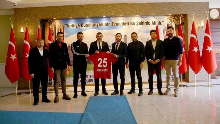 Erzurumspor yönetimi Gençlerbirliği maçı öncesi Erzurum Valisi Vali Mustafa Çiftçi’yi makamında ziyaret etti.