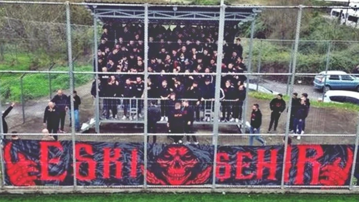 Bölgesel Amatör Lig 6. Grup ekibi Eskişehirspor, dün oynanan maçta Kaynaşlı Belediyespor ile deplasmanda karşılaştı. Eskişehirsporlu taraftarlar, Kaynaşlı İlçe Stadı’nda kendilerine ayrılan 67 kişilik tribüne 200 kişi ile gitti. Tıklım tıklım doldurulan tribünlerde takımlarını destekleyen futbolseverler, 2023-2024 sezonuna özel yaptıkları deplasman pankartını da görücüye çıkardı. Her yıl el emeği yeni bir pankart hazırlayan taraftar grubu, yaptıkları yeni pankart ve takımlarına olan kalabalık desteği sebebiyle futbolseverlerin övgüsünü aldı.