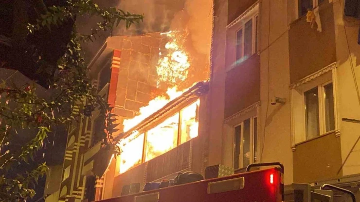 Esenler'de 2 katlı binanın çatı katı alev alev yandı
