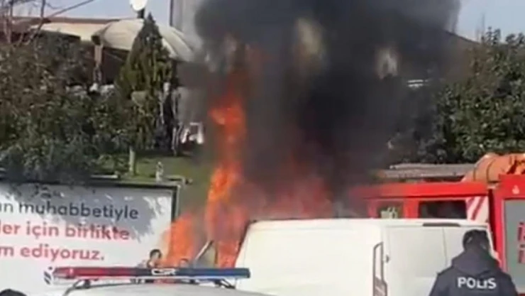 Öte yandan aracın yandığı anlar bir vatandaş tarafından cep telefonu kamerasıyla kaydedildi. Görüntülerde, hafif ticari aracın motor kısmından yandığı, vatandaşların yangın tüpleri ile müdahale ettiği ardından ise olay yerine gelen itfaiye ekiplerinin de alevlere müdahale ederek yanan aracı söndürdükleri görülüyor.