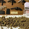 Adreslerde yapılan aramalarda 556 gram marihuana, 10 adet kırmızı reçeteli tablet, 5 adet ruhsatsız tabanca, 1 adet pompalı tüfek şarjörü ile 4 adet tabanca şarjörü, 11 adet av fişeği ile 4 adet tabanca fişeği, 2 adet hassas terazi ve 50 bin 150 lira nakit para ele geçirildi. Gözaltına alınan şüpheliler emniyetteki işlemlerinin adliyeye sevk edildi. Şahıslardan B.A. serbest bırakılırken, H.K.A. ise tutuklanarak cezaevine gönderildi.