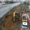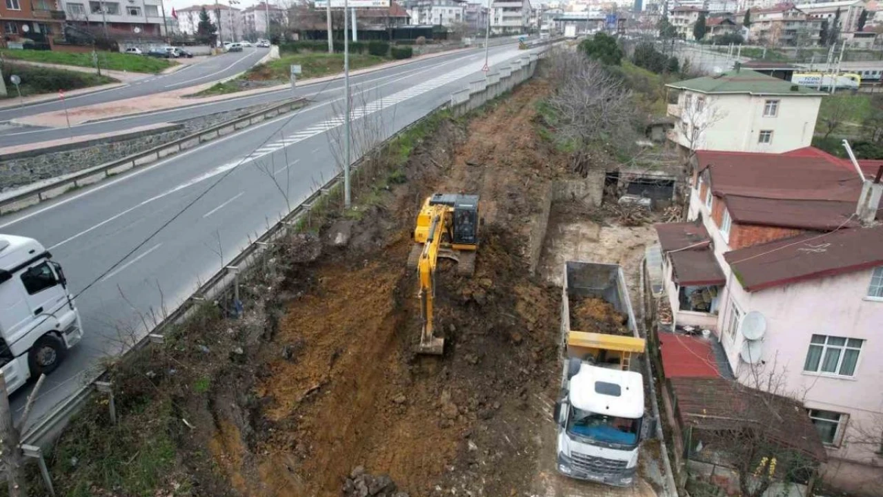 Eskihisar feribot yolunun tren yolu köprüsüne bağlanan kısmına ilave şerit yapımına başlandı.