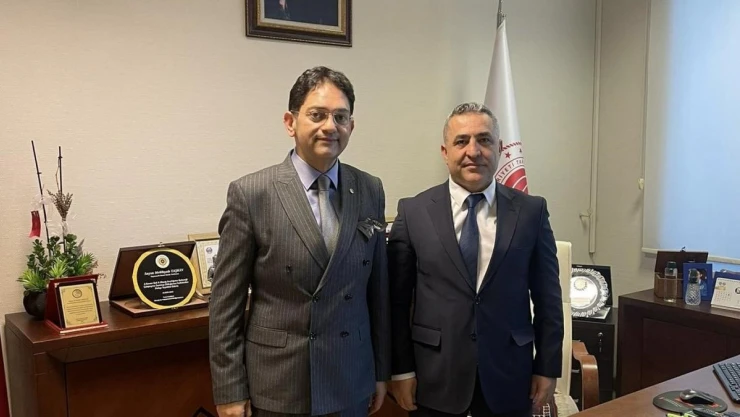 Erzurum Ticaret Borsası (ETB) Yönetim Kurulu Başkanı Hakan Oral, devam eden ve planlanan yatırımlar ile projeler hakkında görüş alışverişi ve değerlendirmelerde bulunmak üzere, Tarım ve Orman Bakanlığı Hayvancılık Genel Müdürü Salih Çelik'i ve Genel Müdür Yardımcısı Vekili Melikşah Taşkın'ı makamında ziyaret etti.