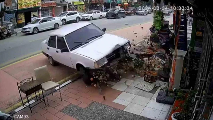 Öte yandan kaza an be an güvenlik kameraları tarafından kaydedildi. Kazada üzerine gelen otomobili fark eden E.E.’nin ani bir hamleyle kenara atlaması ve aracın manav reyonlarına hızla çarpması yer alıyor.