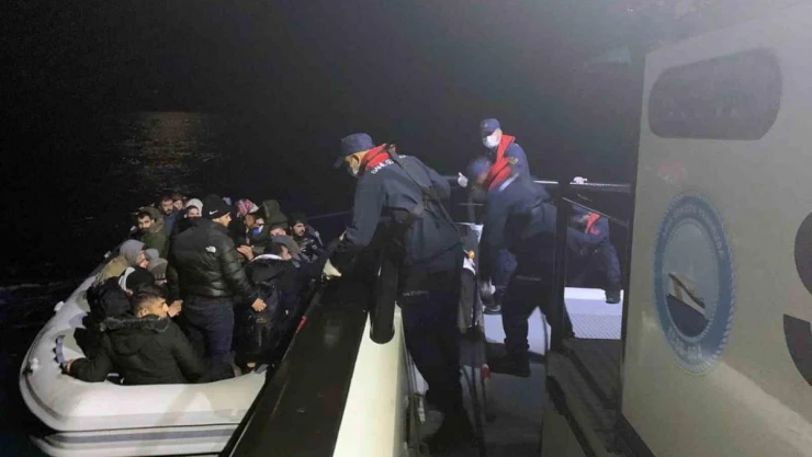 Muğla'nın Fethiye ilçesinde yasa dışı yollardan çıkış hazırlığında olan ve bindikleri lastik botun arıza yapması sonrası yardım çağrısında bulunan 33 düzensiz göçmen yakalandı.