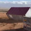 Sivas’ta şiddetli fırtınaya dayanamayan konteyner ev kağıt gibi savruldu.
