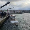 Fırtınada batan tekne vinç yardımıyla çıkarıldı
