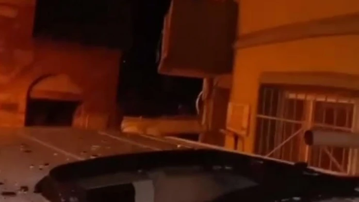 Fırtınada servis minibüsünün içine evin bacası düştü