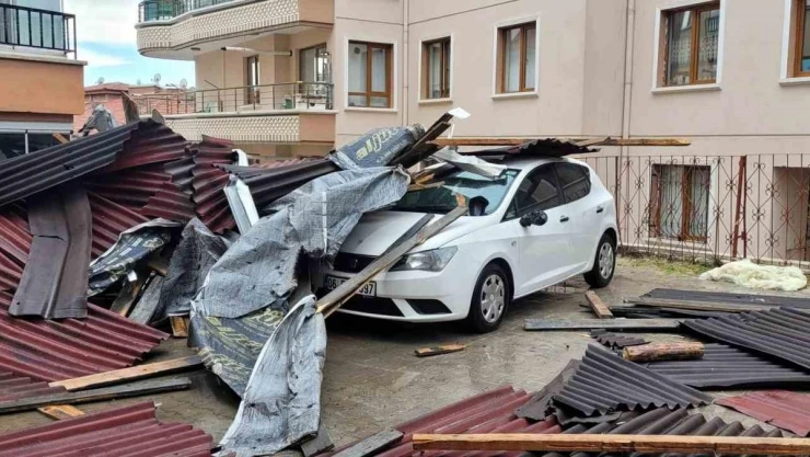Ankara’da şiddetli fırtına sebebiyle yerinden kopup uçan çatı, park halindeki otomobillerin üzerine devrildi. Olayda 1’i ağır olmak üzere toplam 4 araçta ve 3 apartmanda hasar oluştu.